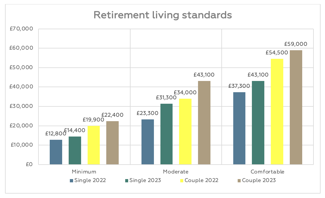 Each year since 2019, the Pensions and Lifetime Savings Association (PLSA) has set about answering the question of how much retirement costs for couples and single retirees. It considers three different Retirement Living Standards, which are summarised as: